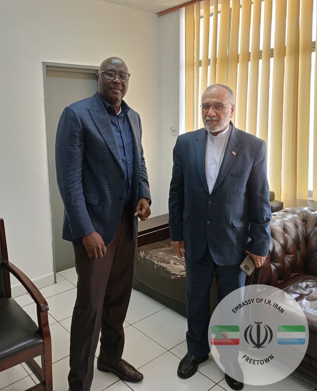 روز چهارشنبه 16 بهمن ماه 1402، حجت الاسلام سید خلیل ساداتی امیری، سفیر جمهوری اسلامی ایران در فری تاون، با ابراهیم آلفا سیسه، وزیر تجارت و صنعت سیرالئون، در محل این وزارتخانه دیدار کرد.