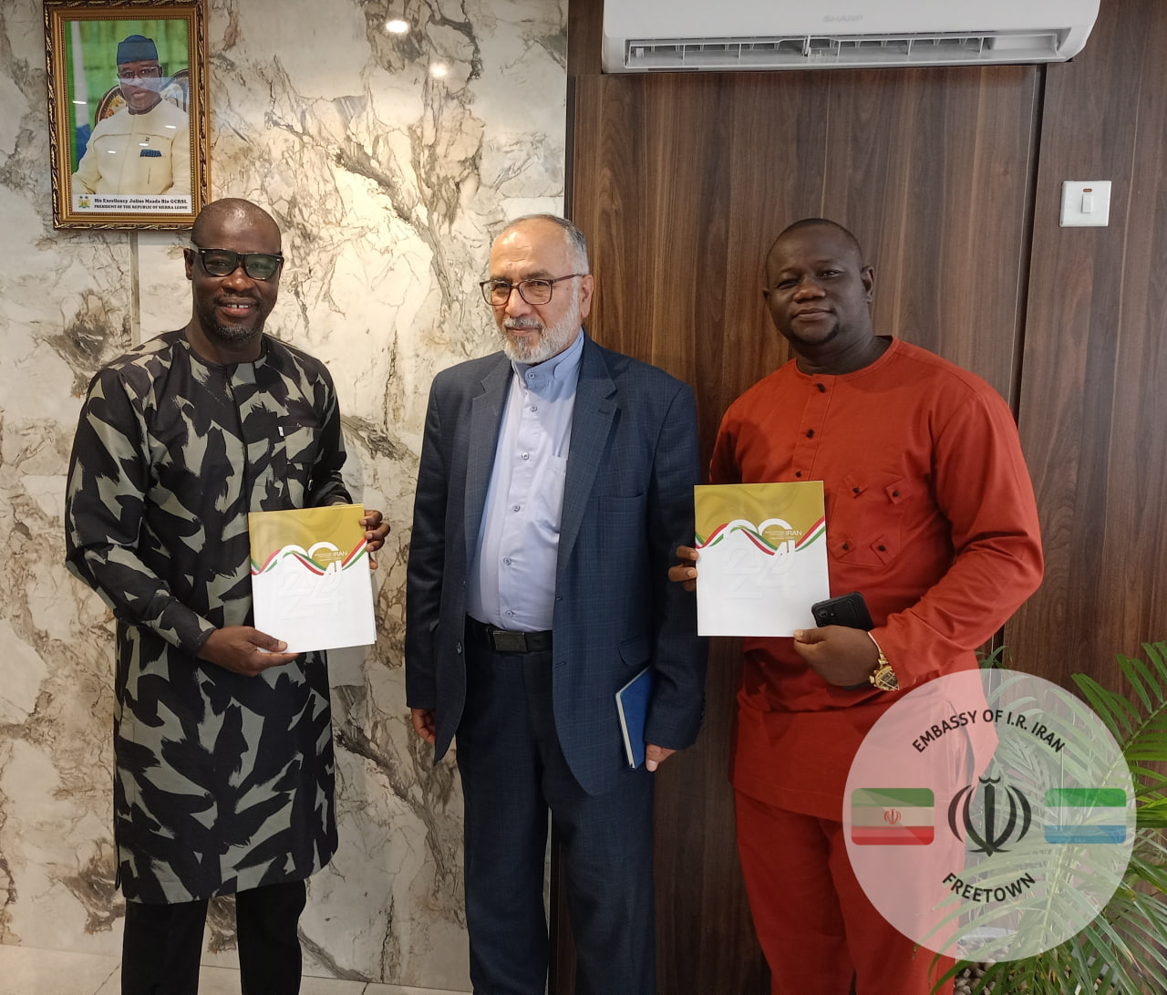 روز جمعه 25 مرداد 1403 جناب آقای ساداتی امیری، سفیر جمهوری اسلامی ایران در فری‌تاون، با نائب رئیس پارلمان جمهوری سیرالئون، جناب آقای ابراهیم تاوا کونته، در محل پارلمان دیدار و گفت و گو نمود. این ملاقات در پی بازگشت ایشان و هیات همراه از سفر به ایران جهت شرکت در مراسم تحلیف رئیس جمهور منتخب، جناب آقای دکتر پزشکیان، صورت پذیرفت. جناب آقای آلفا بن مانساری، نماینده منطقه مویامبا، و از اعضای هیات سیرالئونی عازم به تهران نیز در این ملاقات حضور داشت.